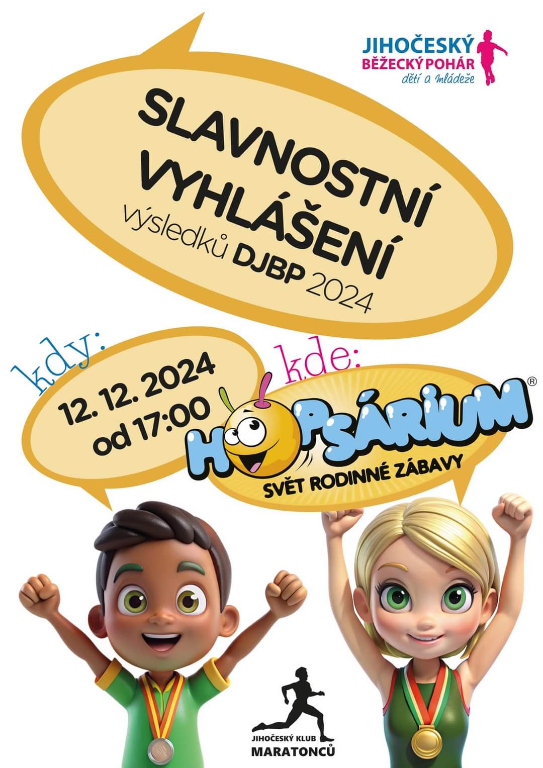 připomínáme všem dětem slavnostní vyhlášení výsledků za rok 2024, které bude 12.12. 2024 od 17 hodin v Hopsáriu v Českých Budějovicích.